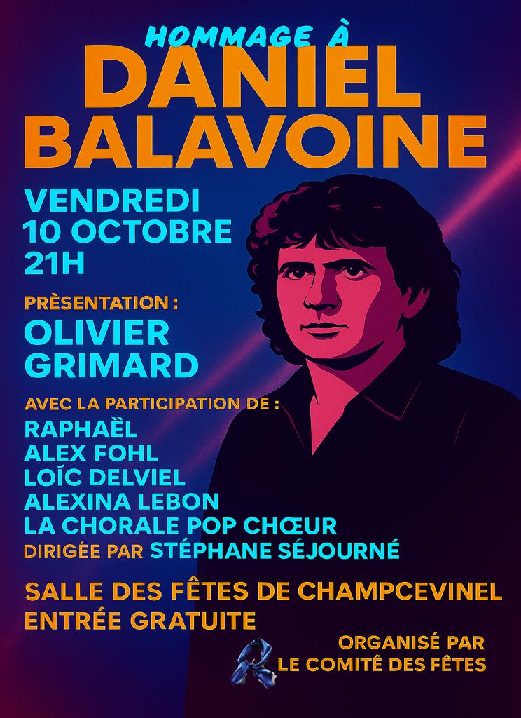 Nous participerons à un concert hommage à Daniel Balavoine organisé par le comité des fêtes de Champcevinel à la salle des fêtes de la commune.